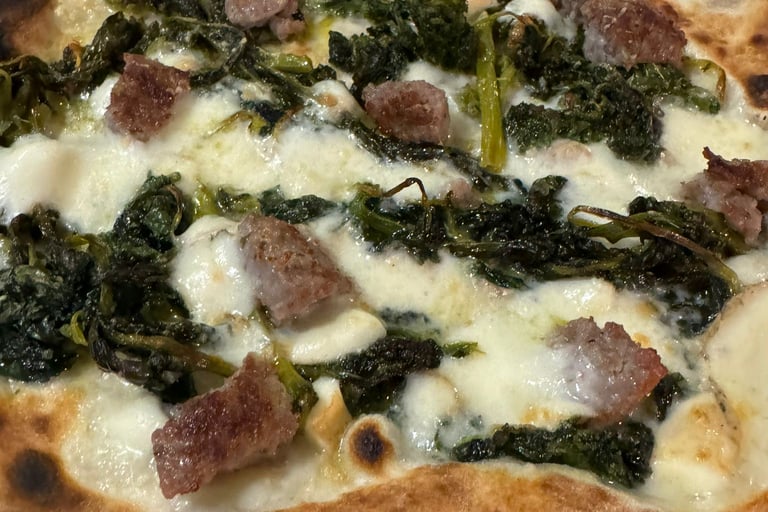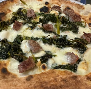 Nuestra pizza Pulcinella es una auténtica explosión de sabores, con mozzarella fresca, friarielli, salchicha jugosa y un toque picante de guindilla. Cada bocado combina la suavidad del queso con la intensidad de la salchicha y el amargor del friarielli. Disfruta de una experiencia culinaria única que te transportará directamente a Italia.