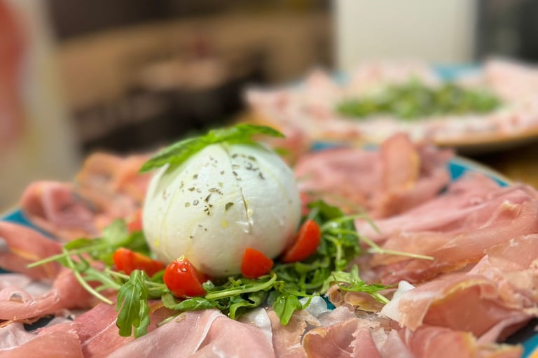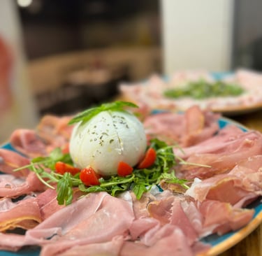 Nuestra Bufalata es una delicia fresca y sabrosa. Presenta 250 gramos de mozzarella de búfala fresca acompañada de jugosos tomates cherry y jamón de Parma de calidad. Cada bocado ofrece una combinación perfecta de cremosidad, dulzura y salinidad, creando una experiencia gastronómica refrescante y equilibrada que encantará tus sentidos.
