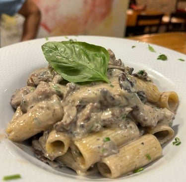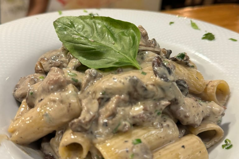 Nuestro Rigatoni Salsiccia, Porcini e Provola combina rigatoni al dente con una deliciosa salsa de setas, butifarra, cebolla caramelizada, mozzarella ahumada y parmesano. Cada bocado ofrece una armonía de sabores y texturas que capturan la esencia de la auténtica cocina italiana. Un verdadero deleite para los amantes de la pasta.